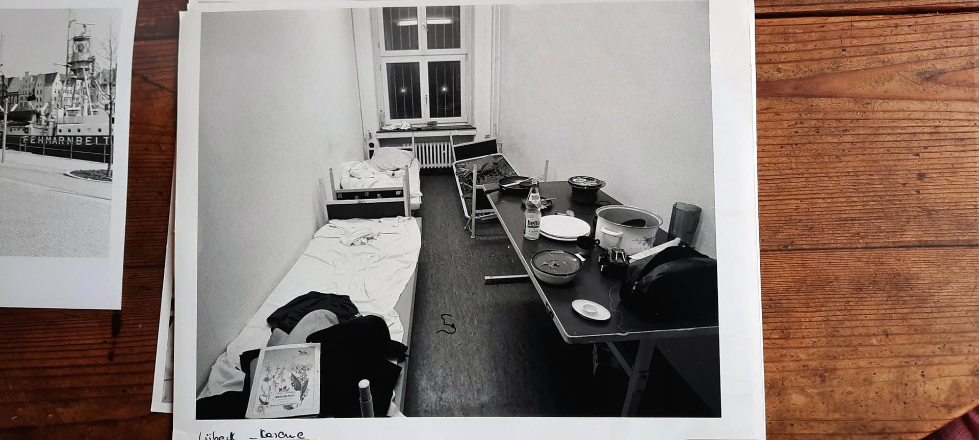 Die Bewohner*innen werden zunächst in verschiedene Krankenhäuser verteilt, teilweise ohne genau zu wissen, wo die anderen sind, wer überlebt hat, und wer nicht. Der damals 14-jährige Ray Soussou ist am Rücken verletzt. Er wird allein in ein Krankenhaus gebracht und dort schon am nächsten Tag ohne Dolmetscher*in und in Abwesenheit seiner Mutter von der Polizei verhört. Ein Teil der Bewohner*innen wird in einer leerstehenden Kaserne untergebracht. Die Überlebenden werden nach ihren Herkunftsländern getrennt auf verschiedene Gebäude des riesigen Geländes verteilt. Sie haben keine eigenen Kochmöglichkeiten, sondern zentrale Essensausgaben und -zeiten. Im nächstgelegenen Supermarkt dürfen sie nicht einkaufen, weil sie den Stadtbezirk Lübeck nicht verlassen dürfen und der Laden außerhalb der Stadtgrenze liegt.
