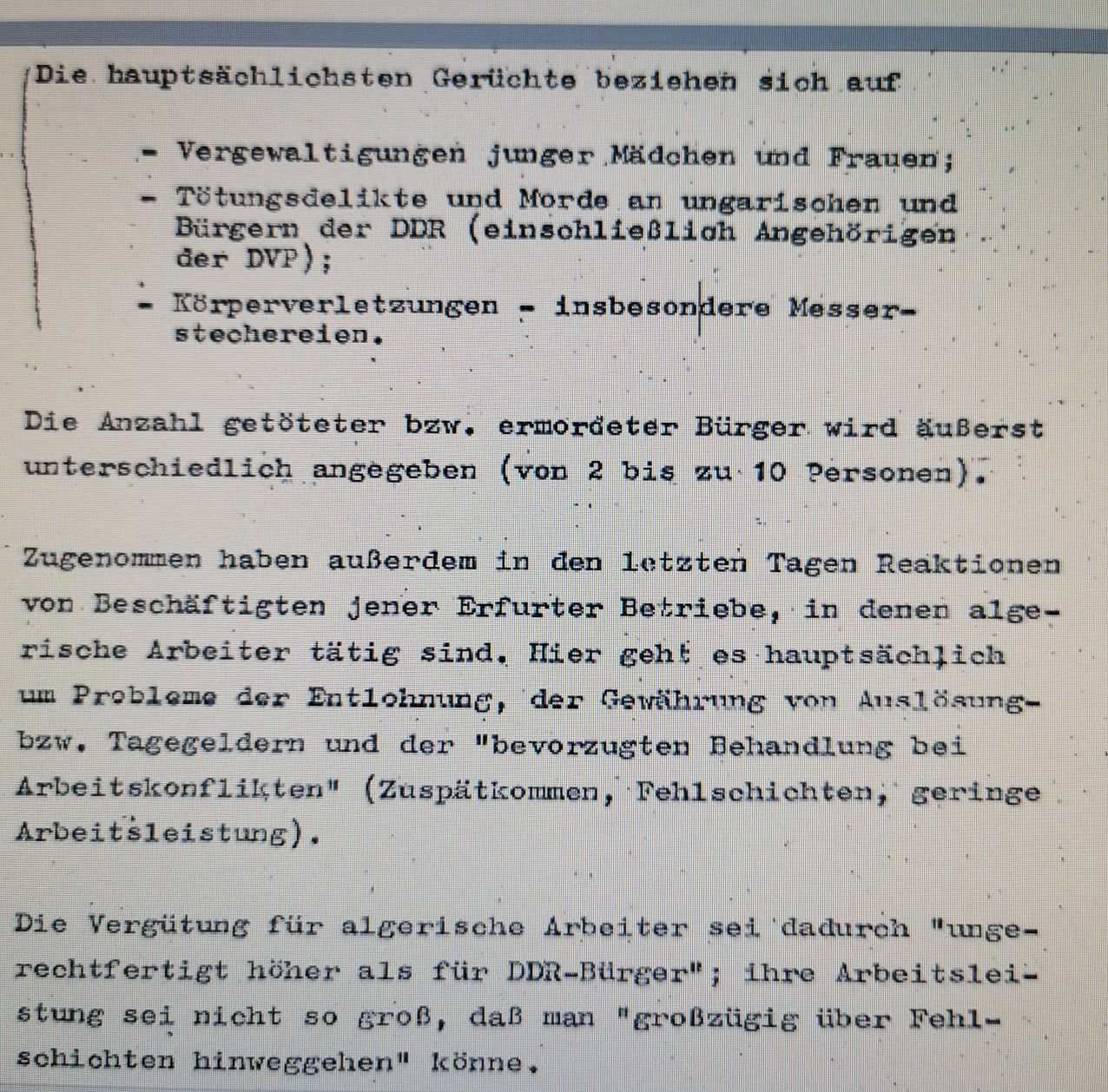 Gerüchte“, die im August 1975 zu der pogromartigen Stimmung gegen die algerischen Arbeiter in Erfurt geführt hatten.