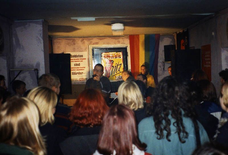 Nach kurzer Renovierungsphase eröffnet das neue Infocafé im Juni 1993. In Eigenregie hatten die Jugendlichen die Räume gestrichen und ein paar alte Möbel besorgt. Die Baracke in der Puschkinallee soll ein neuer Treffpunkt werden und auch ein Veranstaltungsort für Konzerte, Lesungen und Diskussionsrunden.